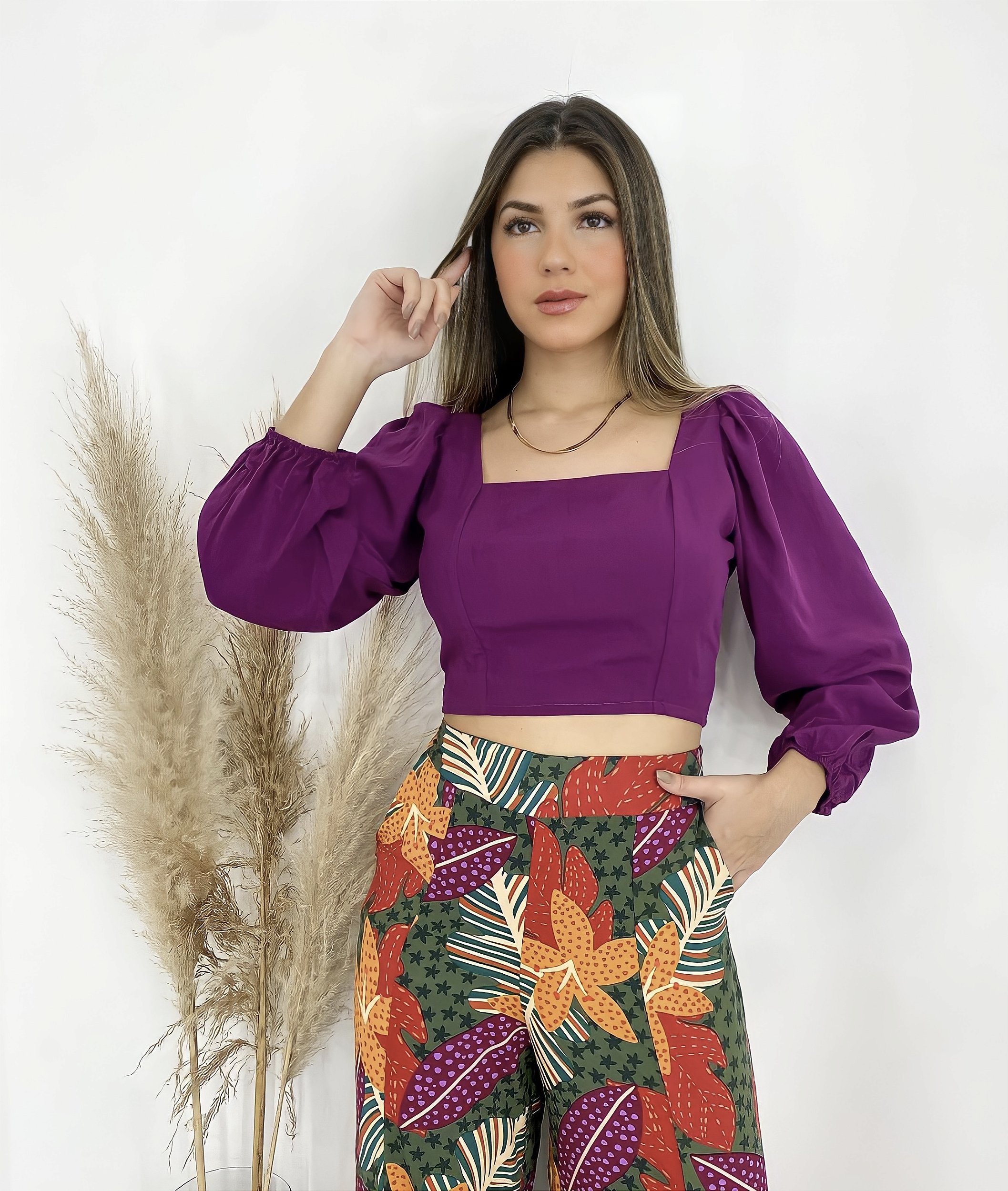 Cropped é uma peça atemporal, ou seja, nunca sai de moda. A nossa Blusa Cropped Bruna é confecionada em viscose e possui manga longa e lastex na costas, é perfeita para diversas ocasiões. Combine com short, calça, saia, tênis, etc. Do estilo casual ao formal, essa é uma blusa versátil que você precisa ter em seu guarda-roupa. Blusa em viscose com detalhe em lastex nas costas. Manga princesa com elástico no punho. Indicado para: dia, noite, lazer.